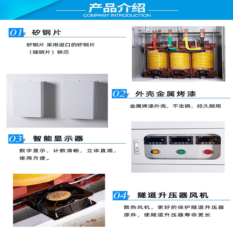 主要生產的產品有遵照GB6450-86 標準設計所從事生產的 :( 變壓器,穩壓器,UPS, 調壓器 ) ,等系列產品都嚴格遵循標準管理組織生產品質的工控產品。積極開拓國內、國際市場,努力走向國際化品牌的戰略。我們以誠信打造市場,以真誠服務客戶,產品在市場上深受國內外廣大用戶的信賴